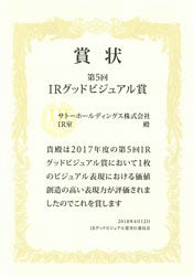 4月12日、IRグッドビジュアル賞実行委員会(一般社団法人日本IR協議会、株式会社バリュークリエイト)が主催する「第5回IRグッドビジュアル賞」が発表され、応募した52社のうち、サトーホールディングス株式会社(以下、サトー)が他6社とともに受賞致しました。
