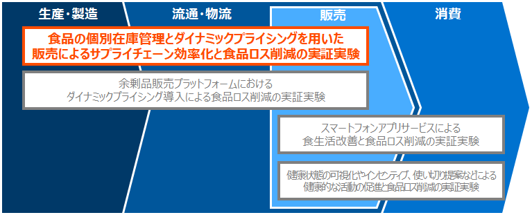 その一つである本実証実験は、サプライチェーンの効率化および事業系食品ロスの削減を目的に、生産・製造から流通・物流、そして販売までのプロセスを対象として実施します。