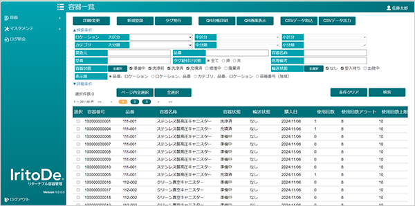 容器の使用回数を管理し、使用する回数の上限に近づくとアラートを表示します。該当する容器は使用を制限されるため、安全対策にも寄与します。