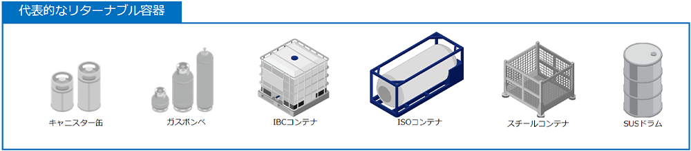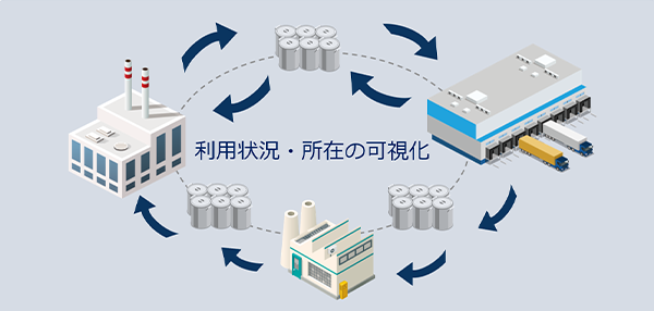 製造現場では、材料や商品の運搬のために、キャニスター缶、ガスボンベ、IBCコンテナ、SUSドラムなど多様なリターナブル容器が使用されています。容器保有数が5万点を超える企業や、容器使用による1日の出荷数が1000点を超える企業も存在します。これらは工場から出荷後、物流拠点や顧客の拠点へと複雑に動き回るため、移動履歴や在庫管理が難しい資材です。