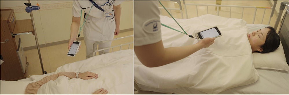 これにより、就寝中の患者を起こすことなく認証が可能となり、看護師の業務負担および心理的ストレスの大幅な軽減に寄与しています。