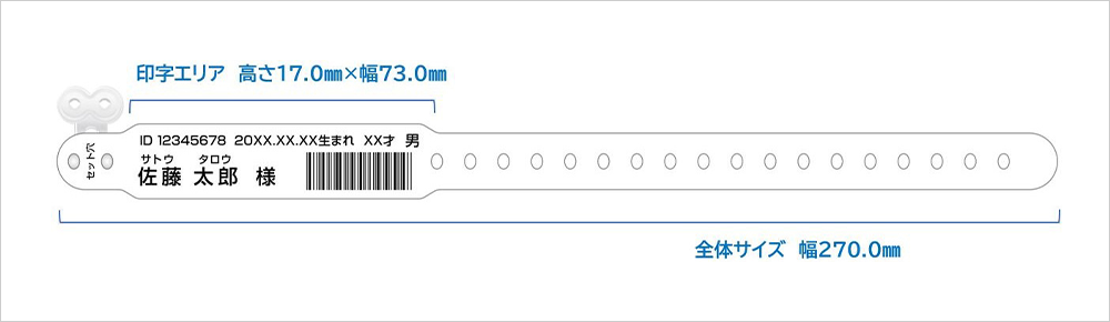 当社従来品のRFIDリストバンドよりも印字エリアを短く設計することで、大人から小児まで兼用できるサイズを実現しました。