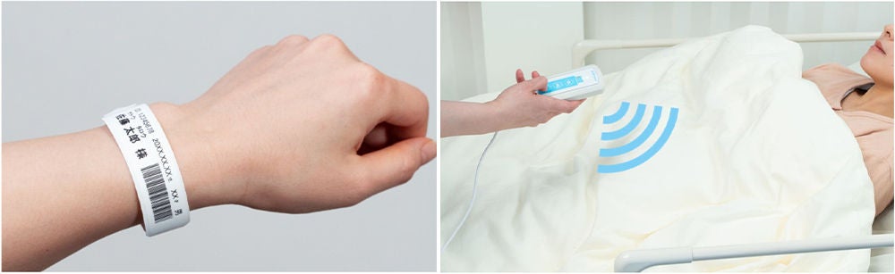 「RFIDスマートケアバンド」は、患者や医療従事者双方の本人確認作業の負担軽減や安全性の向上を目的に開発した医療用リストバンドです。RFIDを活用することで、布団の上からでも非接触で情報を読み取れるため、患者の睡眠環境を妨げずに、看護師の心理的負担も軽減します。また、印字エリアを短く設計し、大人から小児まで兼用できるサイズを実現することで、在庫・装着管理を簡素化しました。