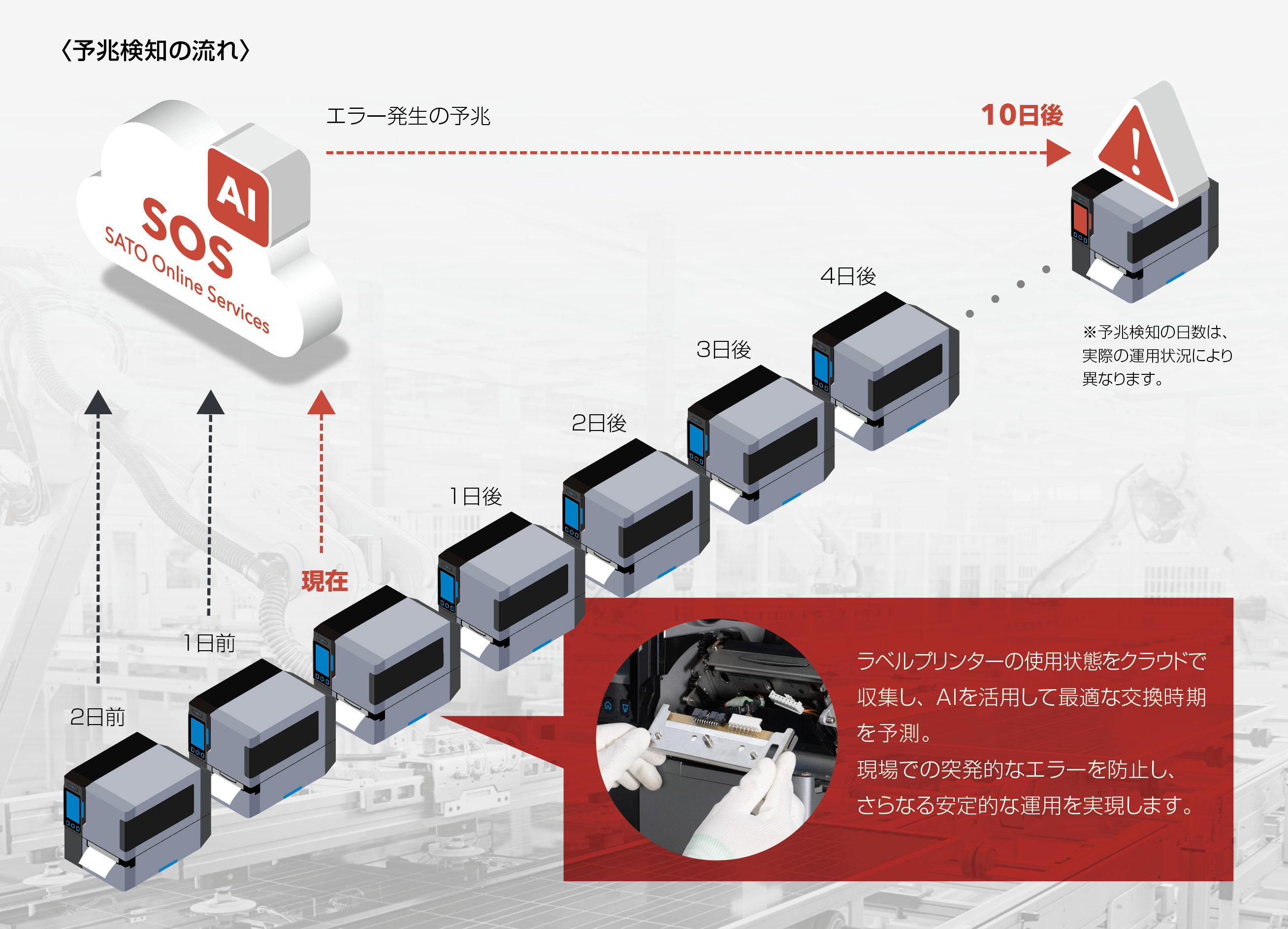 - AIを活用したプリンター状態監視により、故障時期を予兆