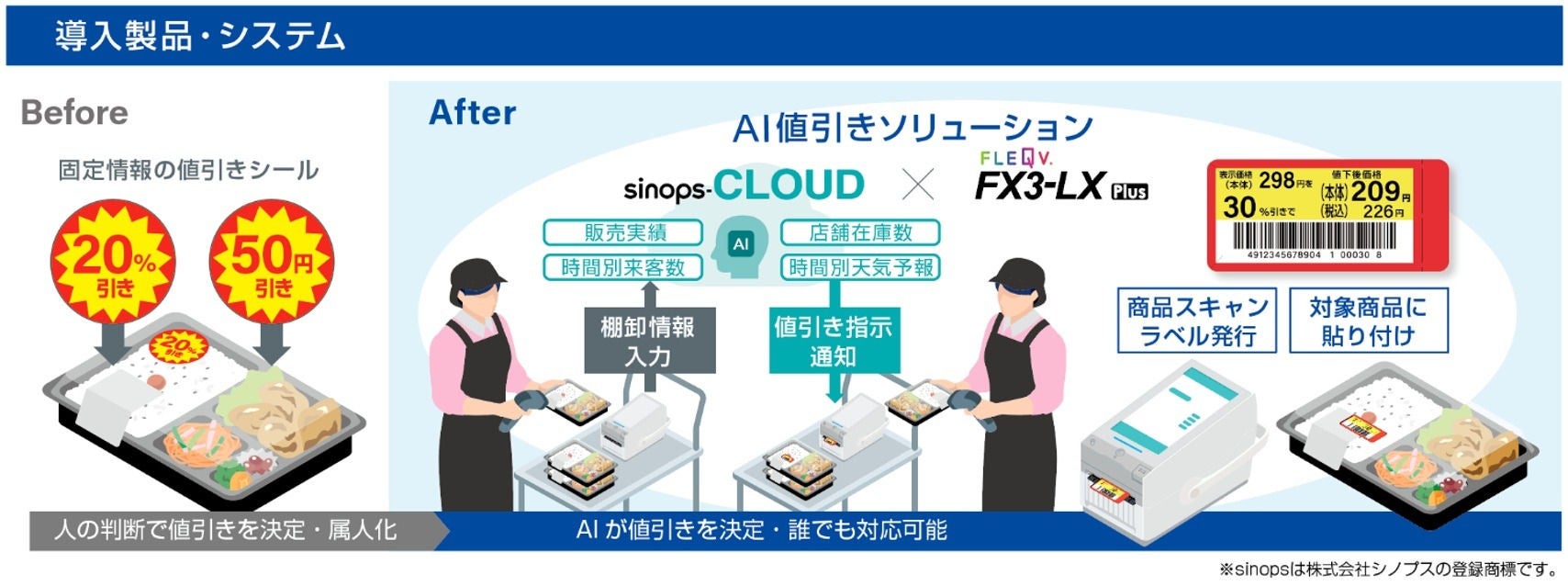 株式会社サトー(本社:東京都港区、以下「サトー」)と株式会社シノプス(本社:大阪府豊中市、以下「シノプス」)は共同で提供する「AI値引きソリューション」が、株式会社藤三(本社:広島県広島市)のスーパーマーケット全26店舗に導入されたことをお知らせします。