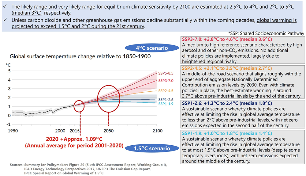 As part of our mission to contribute toward a better and more sustainable world, we will pursue measures that are consistent with the 1.5°C scenario while also planning for the 4°C scenario from a risk management perspective. Our priority is to address high-impact and urgent climate-related risks and opportunities in line with action plans we developed for the material environmental topics identified in our materiality assessment.
